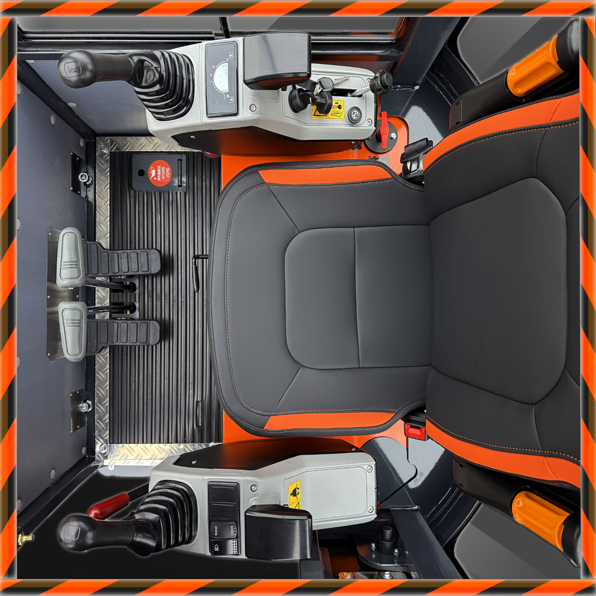 Die Frontscheibe kann jetzt geöffnet und mittels einer Arretierung einfach versenkt werden, ein Scheibenwischer sorgt für klare Sicht auch bei schlechtem Wetter und Regen. Im Sommer sorgt der eingebaute 12V-Ventilator auch bei hohen Außentemperaturen für frische Luft in der Kabine. Das speziell entwickelte Heckgewicht erhöht die Stabilität und Traglast des Baggers erheblich im Vergleich mit anderen Modellen der 1,8T klasse.
